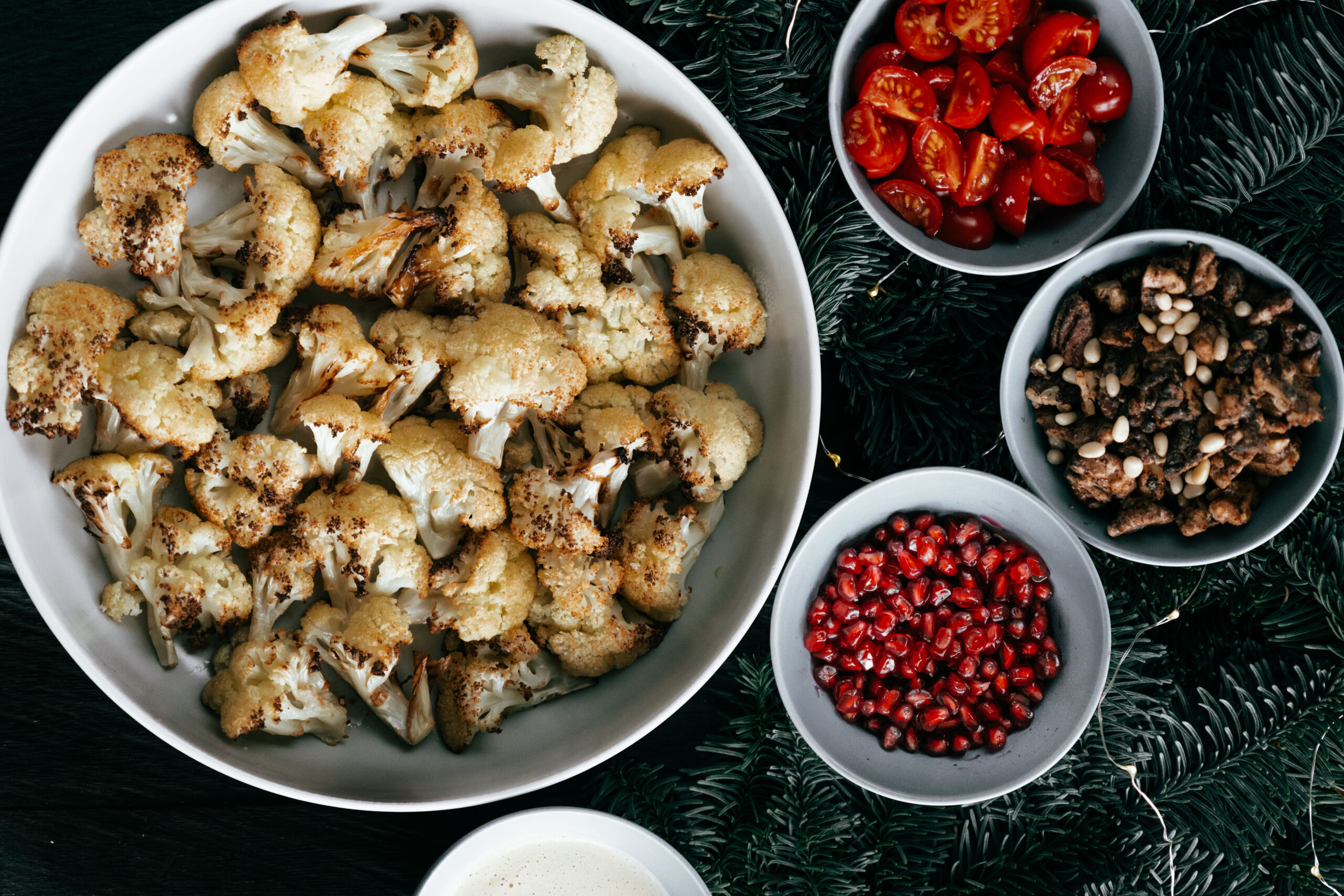 Salat aus gebackenem Blumenkohl mit Granatapfelkernen
