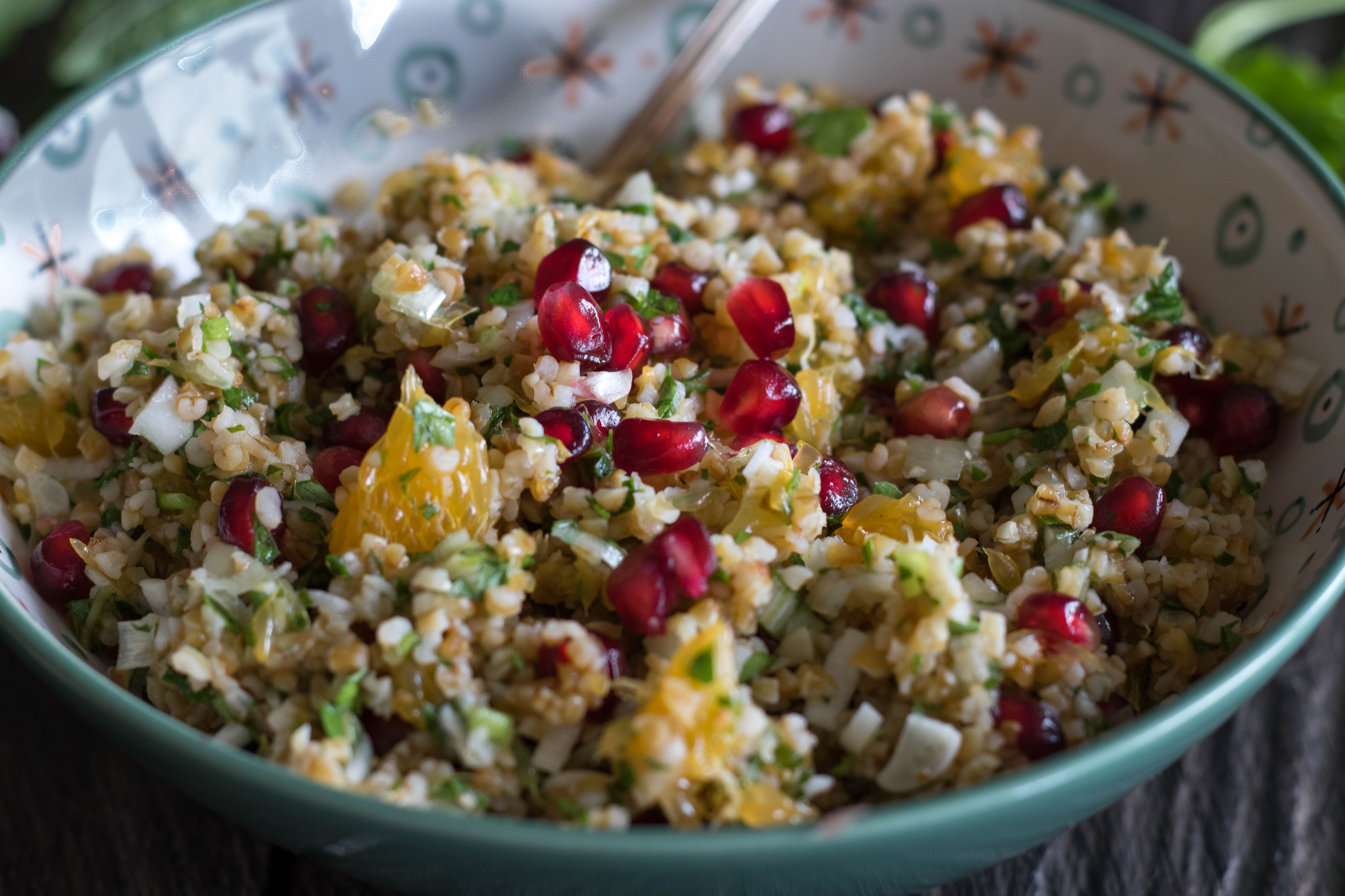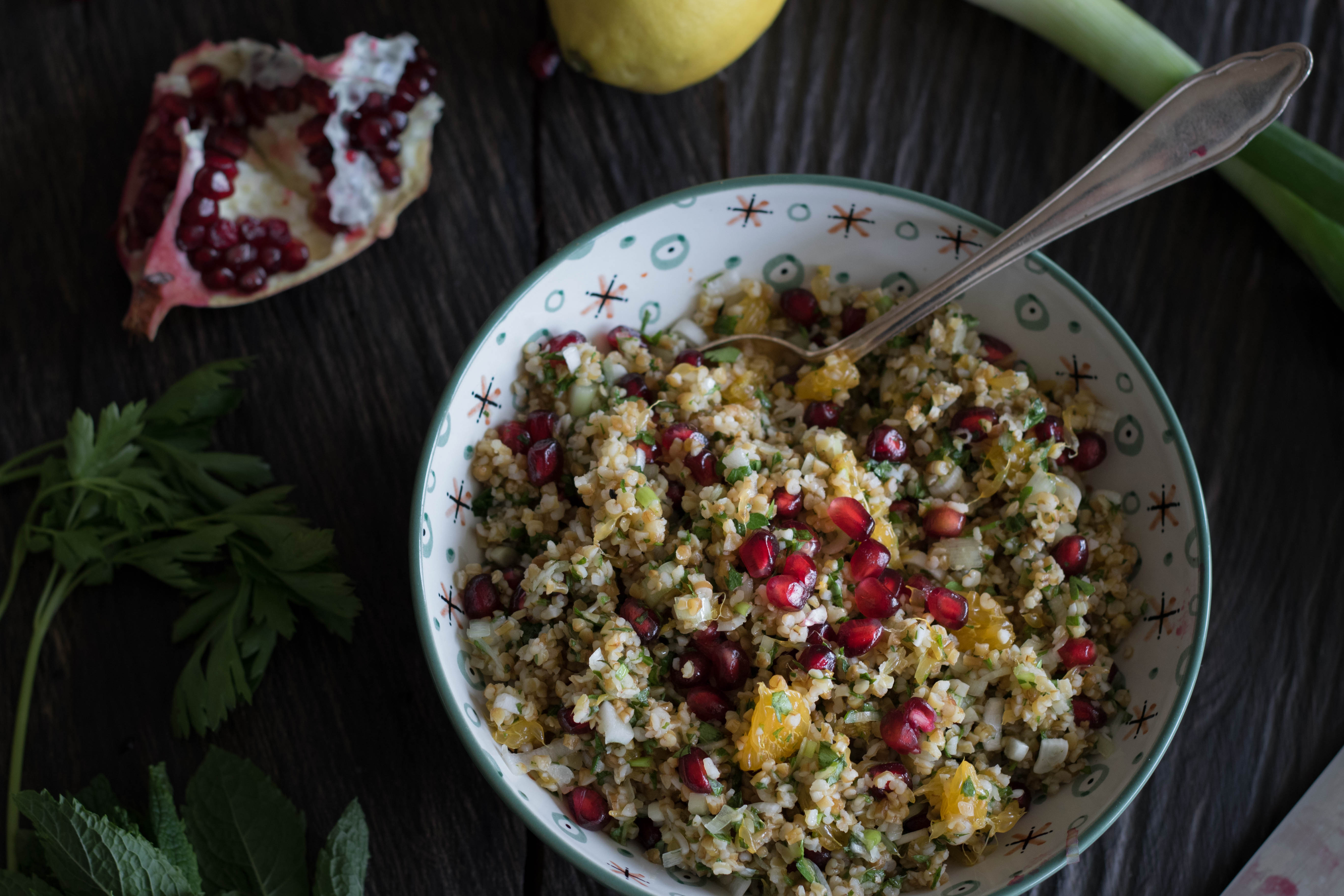 Bulgursalat mit frischen Kräutern und Granatäpfel