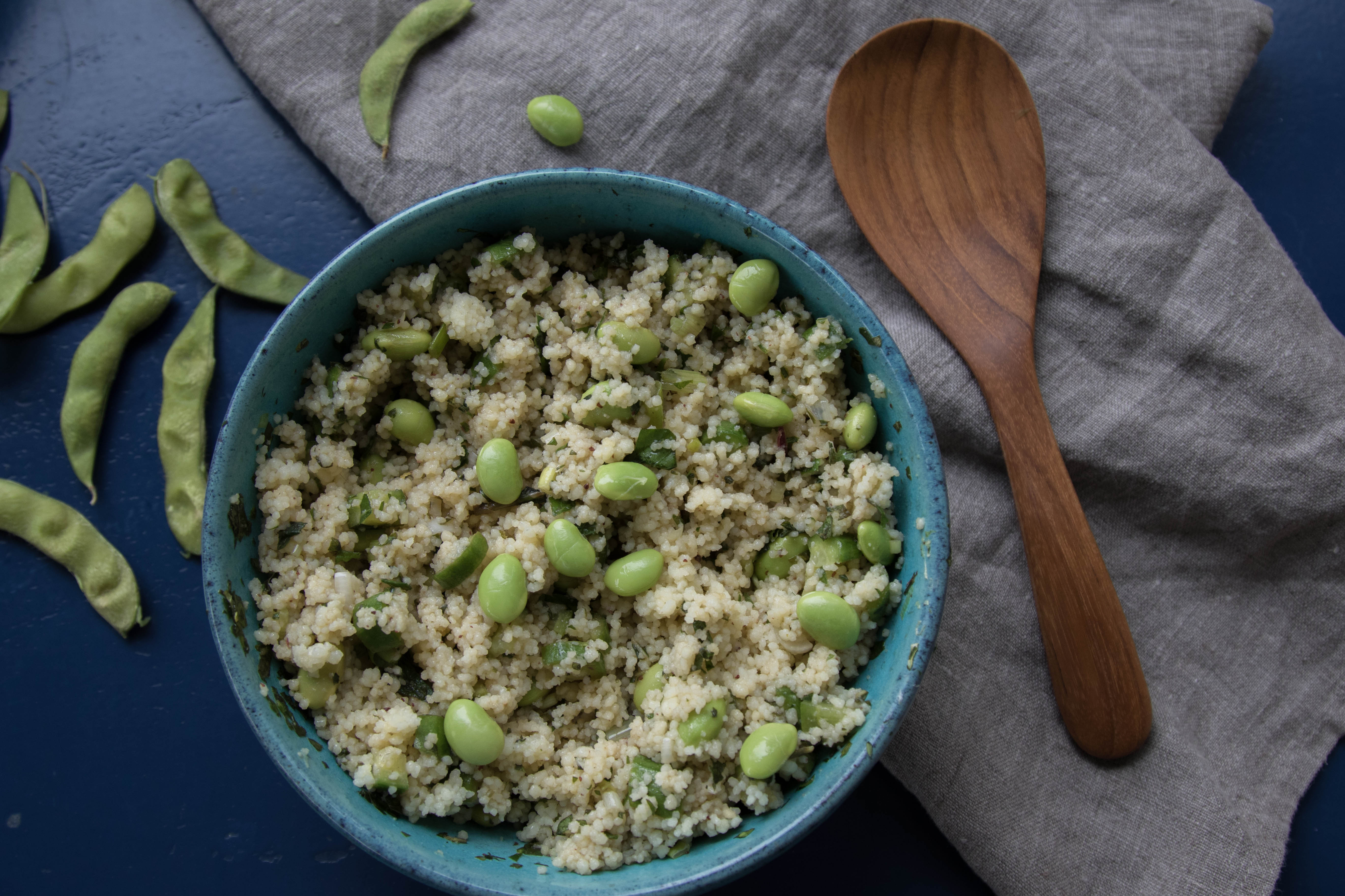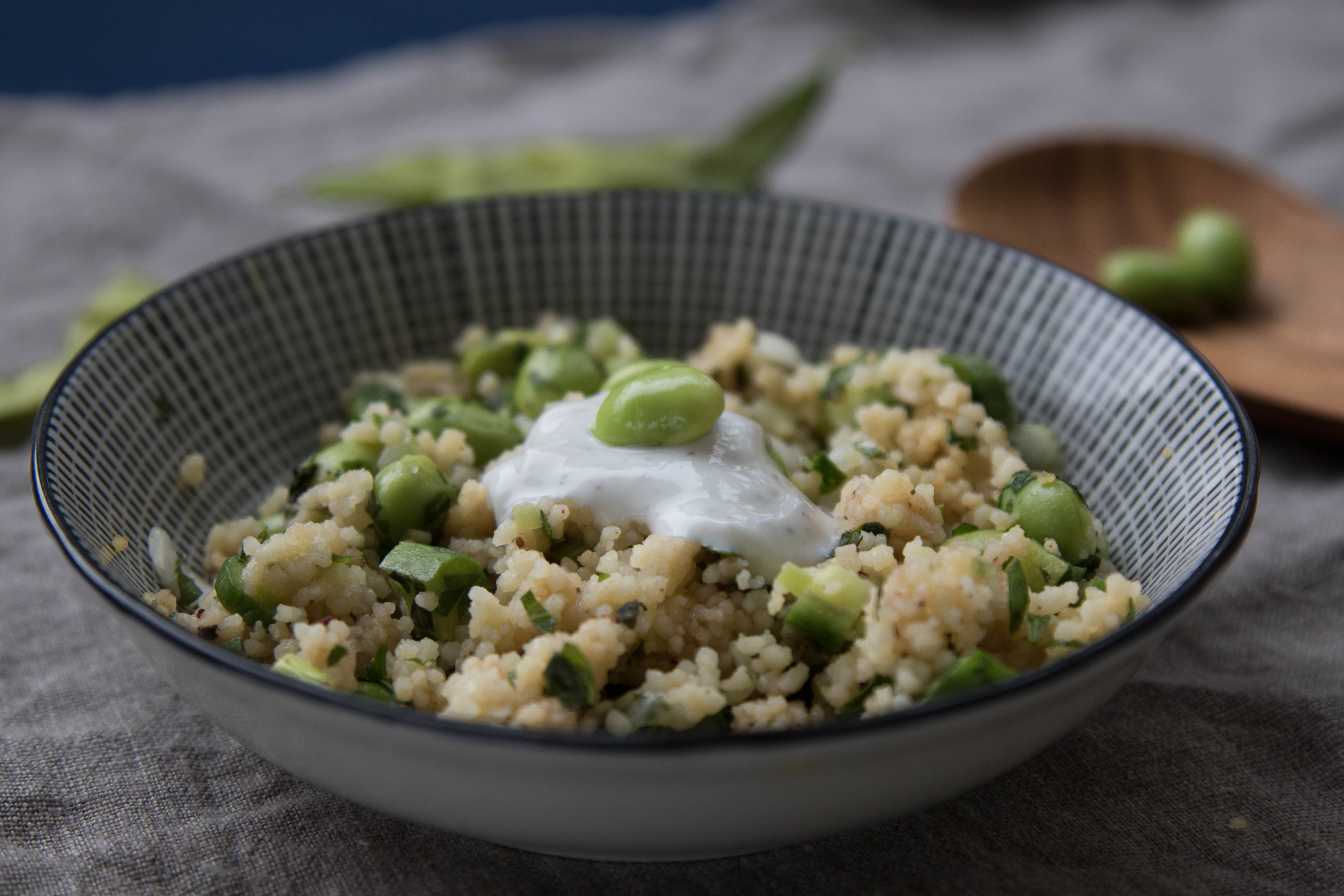 Mit dem Sommer kommt die Grillsaison und damit unweigerlich die Frage: was für einen Salat mache ich? Die Möglichkeiten sind endlos. Für heute schlage ich einen Couscous Salat mit Edamame mit einem frischen Jogurt-Dip mit Zaatar vor.