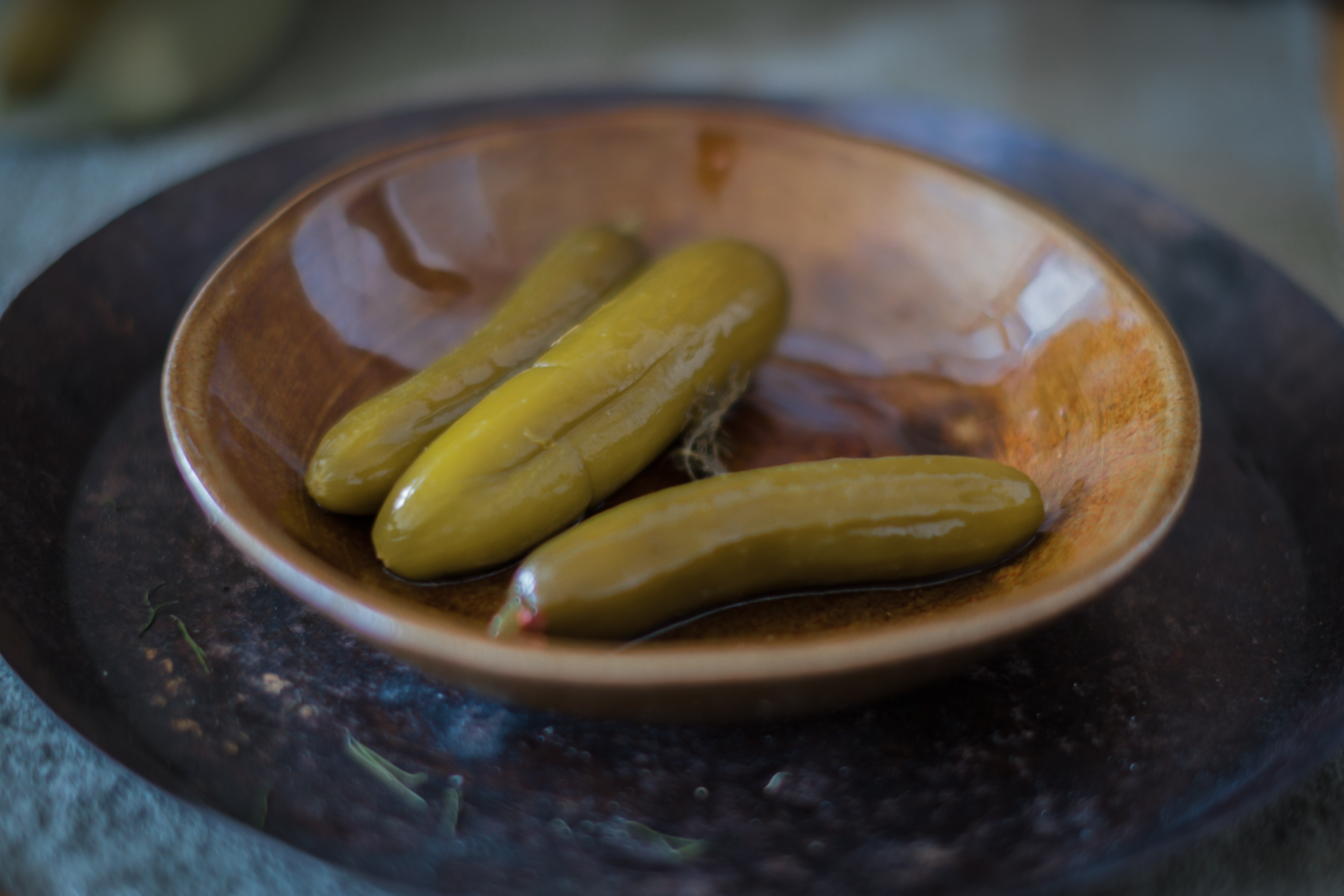 Diese eingelegten Salzgurken werden in Israel zu jedem Essen serviert, in Falafelbuden kann man sich einfach Nachschub an Pickles oder „Chamuzim“ holen. Auf den Märkten sieht man überall Einmachgläser mit eingelegten Gurken. (Ein-)Gemacht sind sie ganz einfach und mit wenig Zutaten: