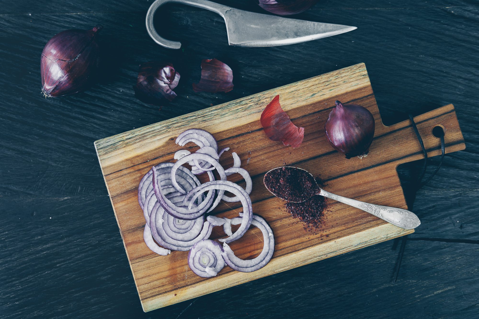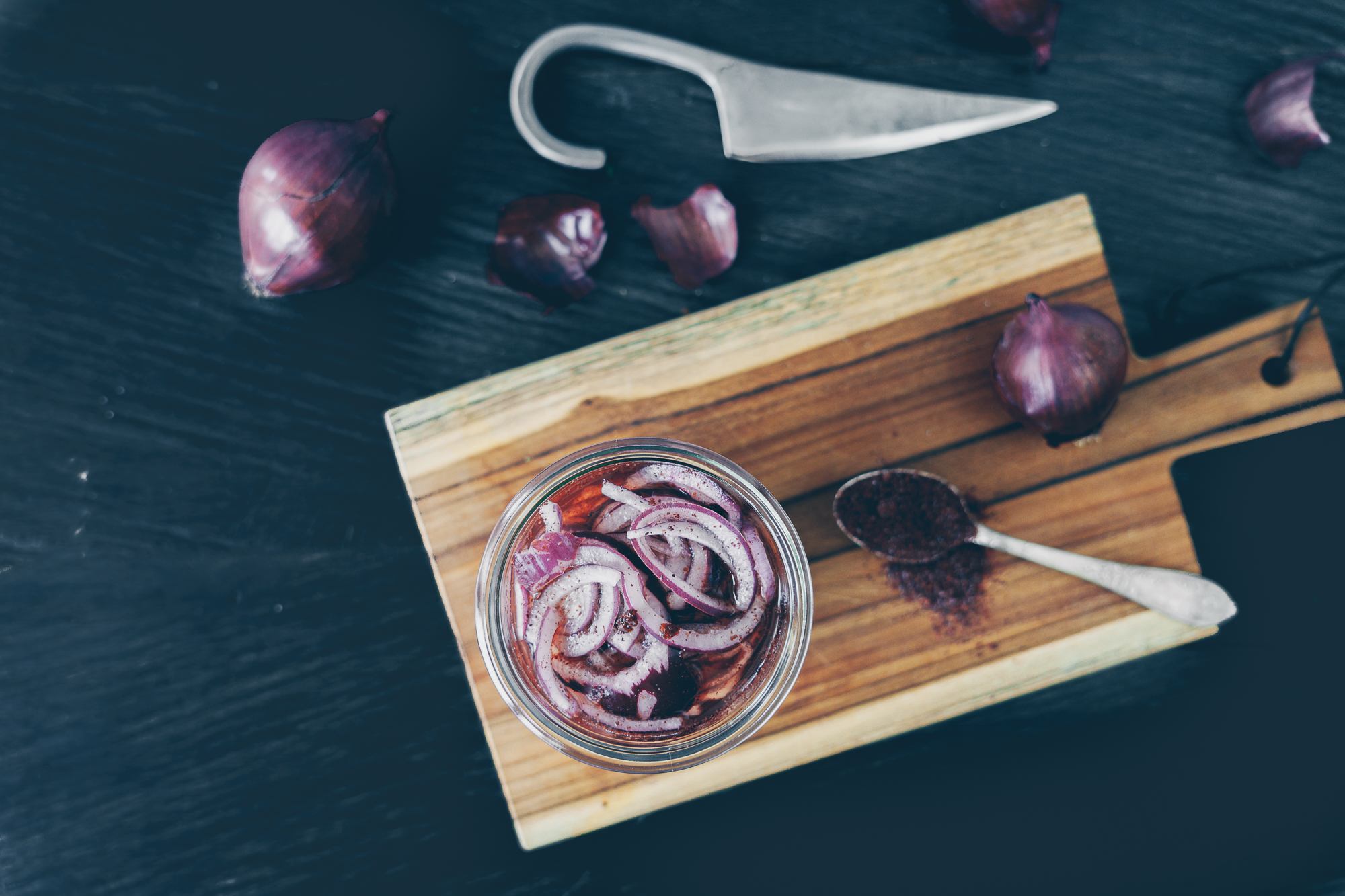 Eingelegte rote Zwiebeln mit Rotwein und Sumach