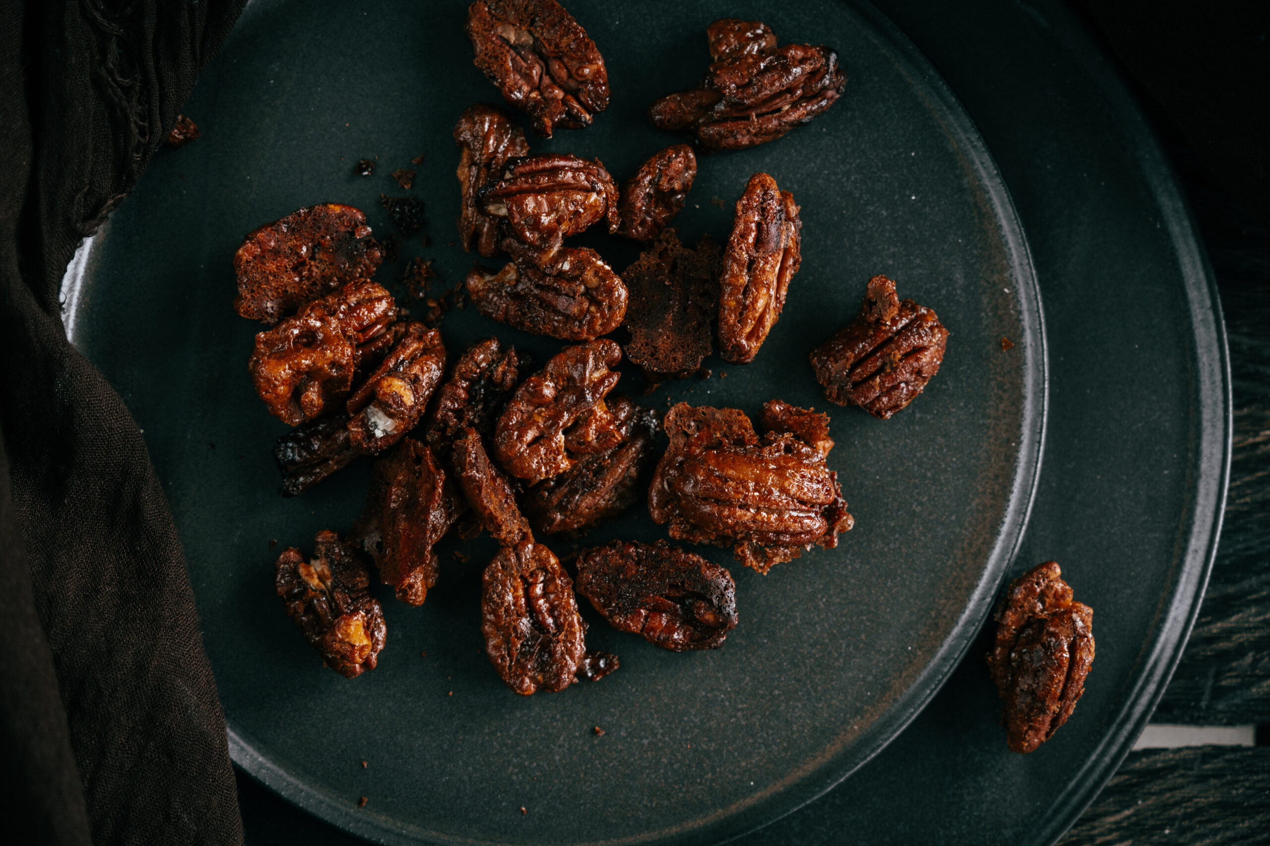 Geröstete Pekannüsse mit Dattelhonig und Tahini und etwas Salz