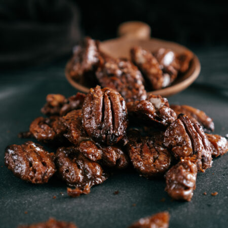 Geröstete Pekannüsse mit Dattelhonig und Tahini und etwas Salz