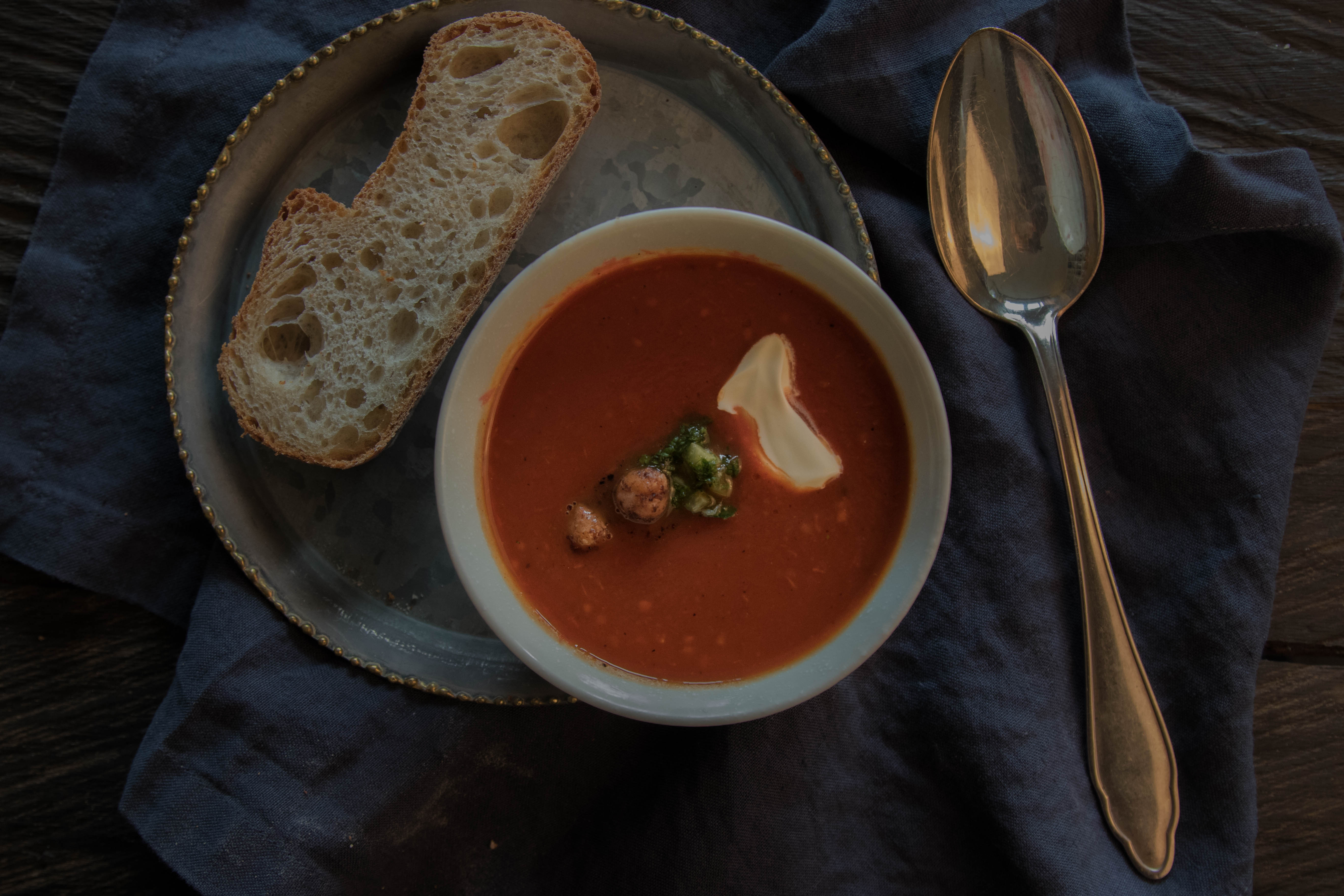Diese herzhafte Tomatensuppe bringt mit der Kombination von Tomaten, Zitronen, Pferferminze und Petersilie ein Stück Sommer zurück und ist ganz rasch und einfach zuzubereiten.