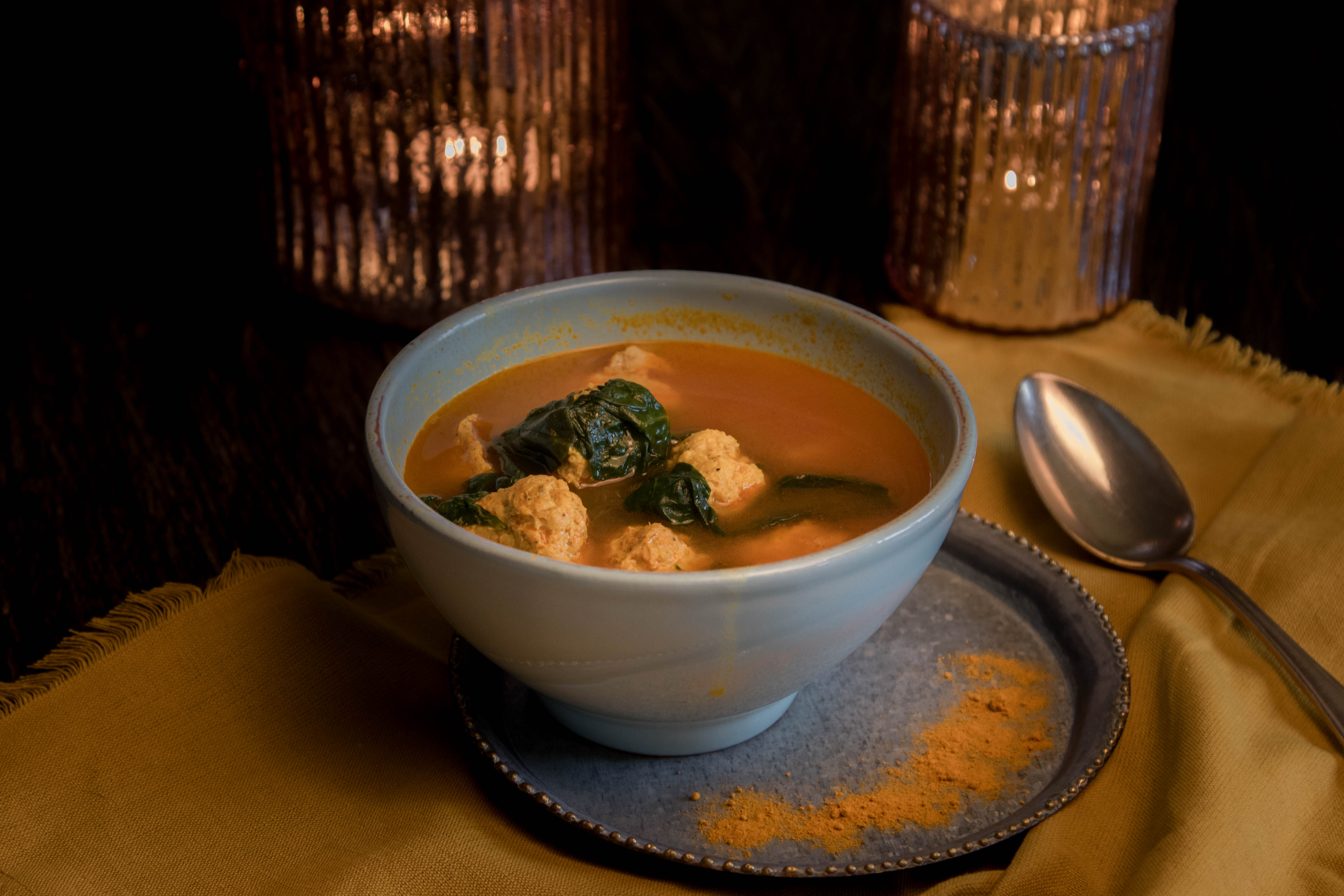 Kurkuma-Curry-Suppe mit Pouletbällchen