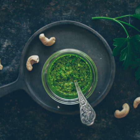 Gewürze und Kräuter geben meinen Gerichten ihren ganz eigenen Charakter. Dieses Kräuterpesto ist konzentrierter Geschmack im Glas, passt zu Pasta, Hummus, Sabich und ist im Kühlschrank gut verschlossen eine Woche haltbar.