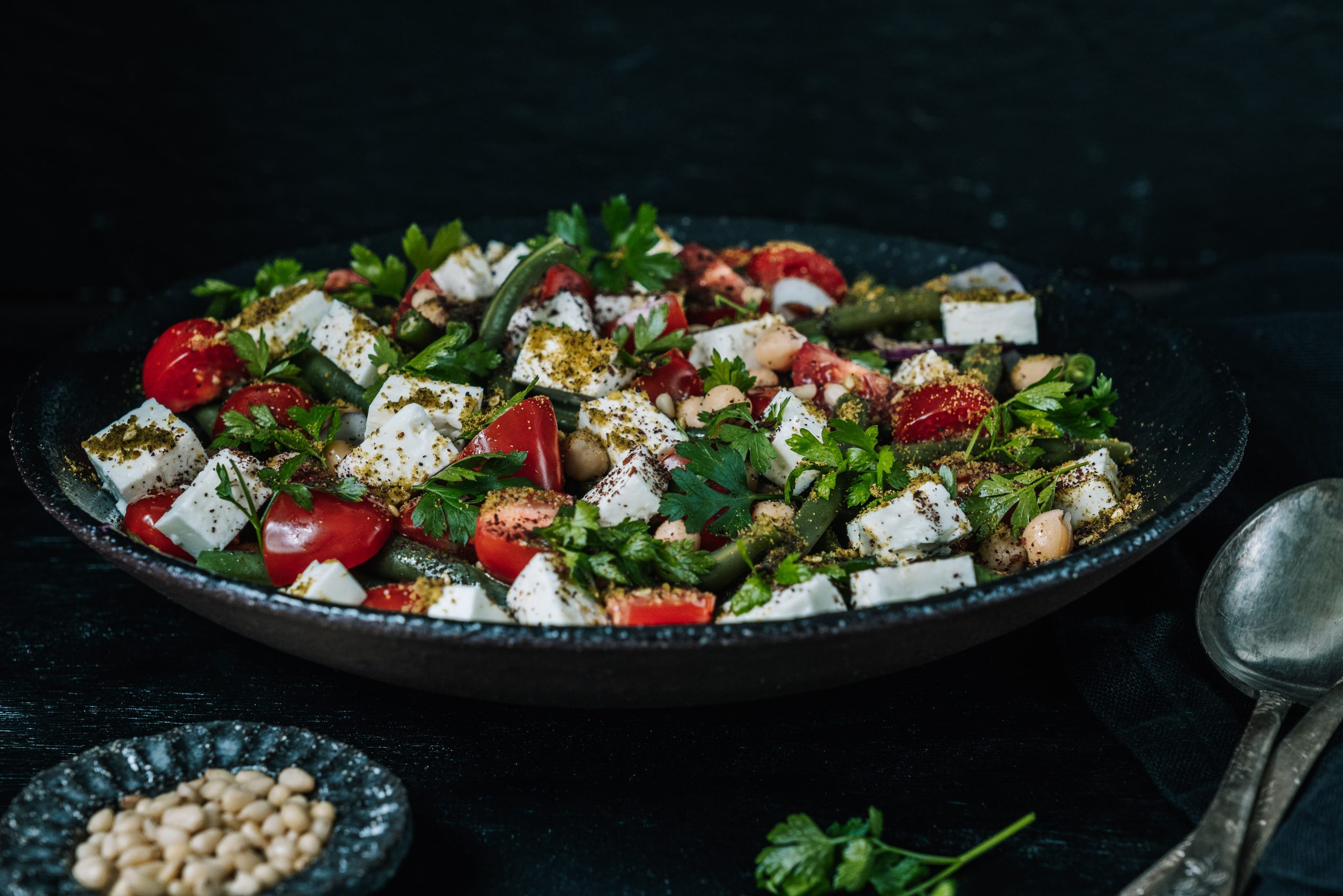 Ein mediterraner Bohnensalat ist die perfekte frische und gesunde Mahlzeit für warme Tage – wenn sie dann kommen. Mit einer Mischung aus knackigen grünen Bohnen, sonnegereiften Tomaten, proteinreichen Kichererbsen und würzigem Feta ist dieser Salat nicht nur lecker, sondern auch nahrhaft. Abgerundet mit einem Zitronen-Senf-Honig-Dressing und verfeinert mit Zaatar und Sumach, wird dieser Salat sicherlich dein neuer Lieblingssommerhit! Meiner ist es schon. Auch wenn der Sommer auf sich warten lässt.