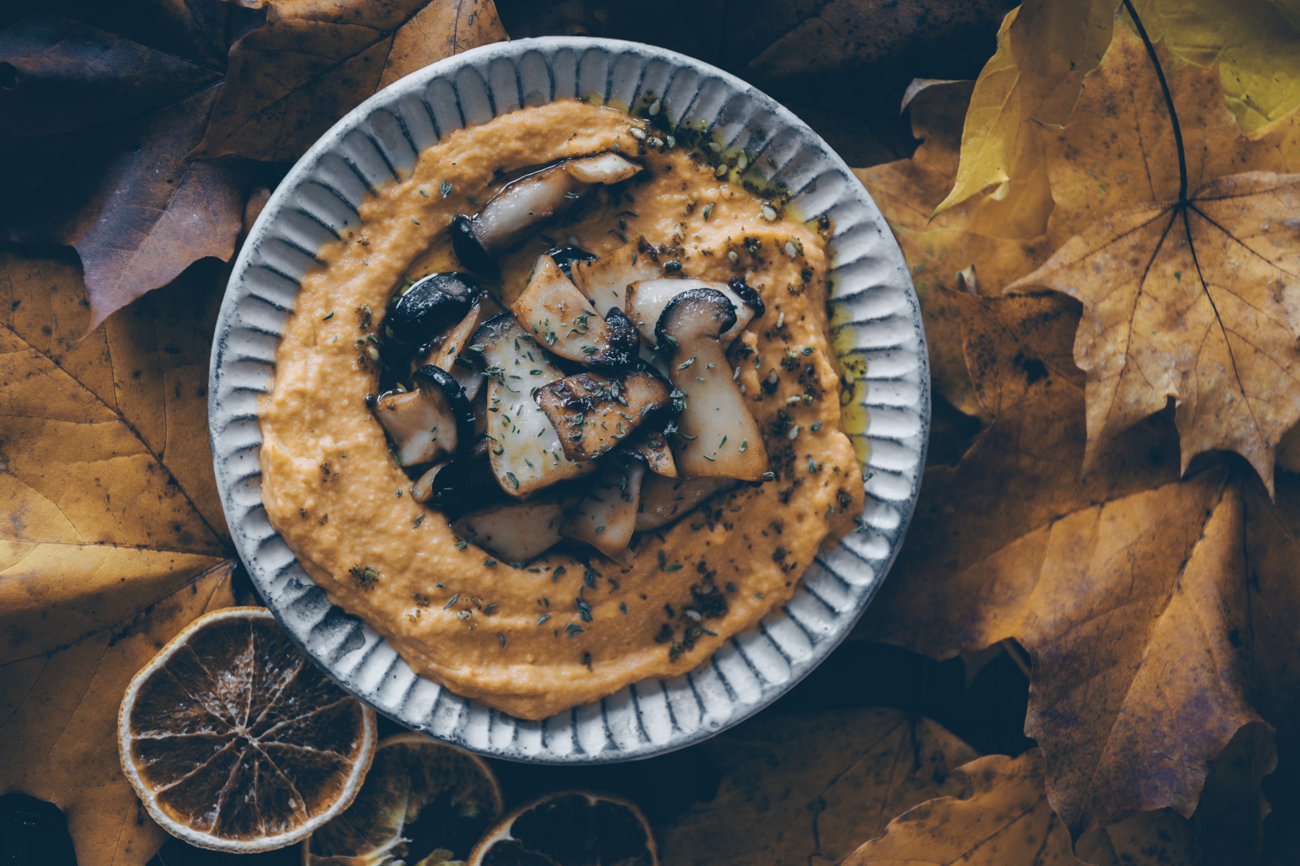 Orangen-Tahini mit sautierten Pilzen
