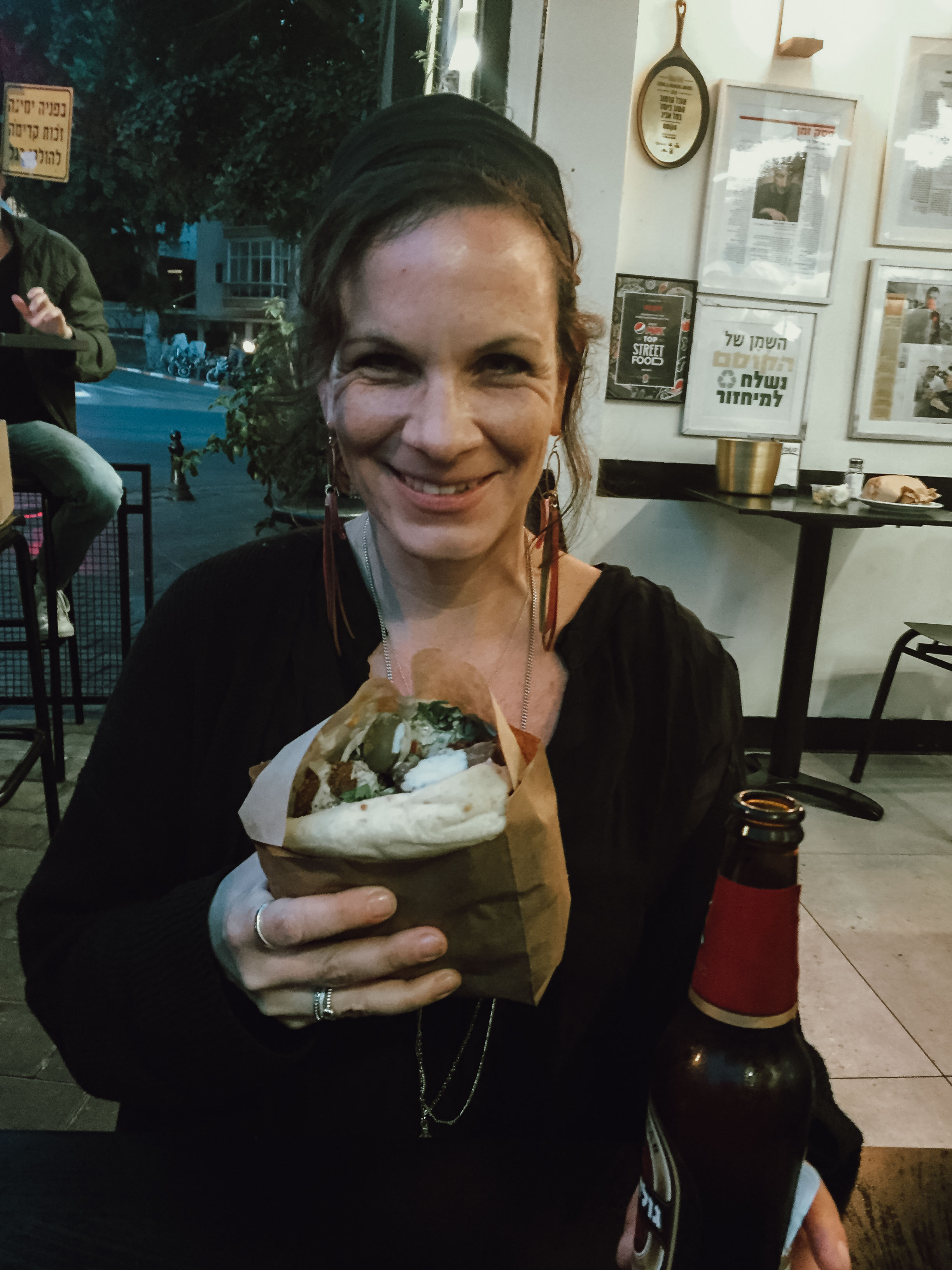 In Tel Aviv keinen Falafel essen, geht gar nicht. Zählt nicht. Chamme nit mache. Und wenn Falafel, dann einen richtig guten Falafel. Mit frischen Zutaten, den typischen Israelischen Salzgurken (die hab ich schon als Baby der Schweizer Schoggi vorgezogen), Hummus, Tahina, Charif (scharf). Mit alles eben. Gegessen haben wir bei „Ha Kosem“, der Zauberer, an der King George (schon wieder) und beim ersten Bissen hab ich auch begriffen, warum sogar die Israeli für einen Falafel Schlange stehen.
