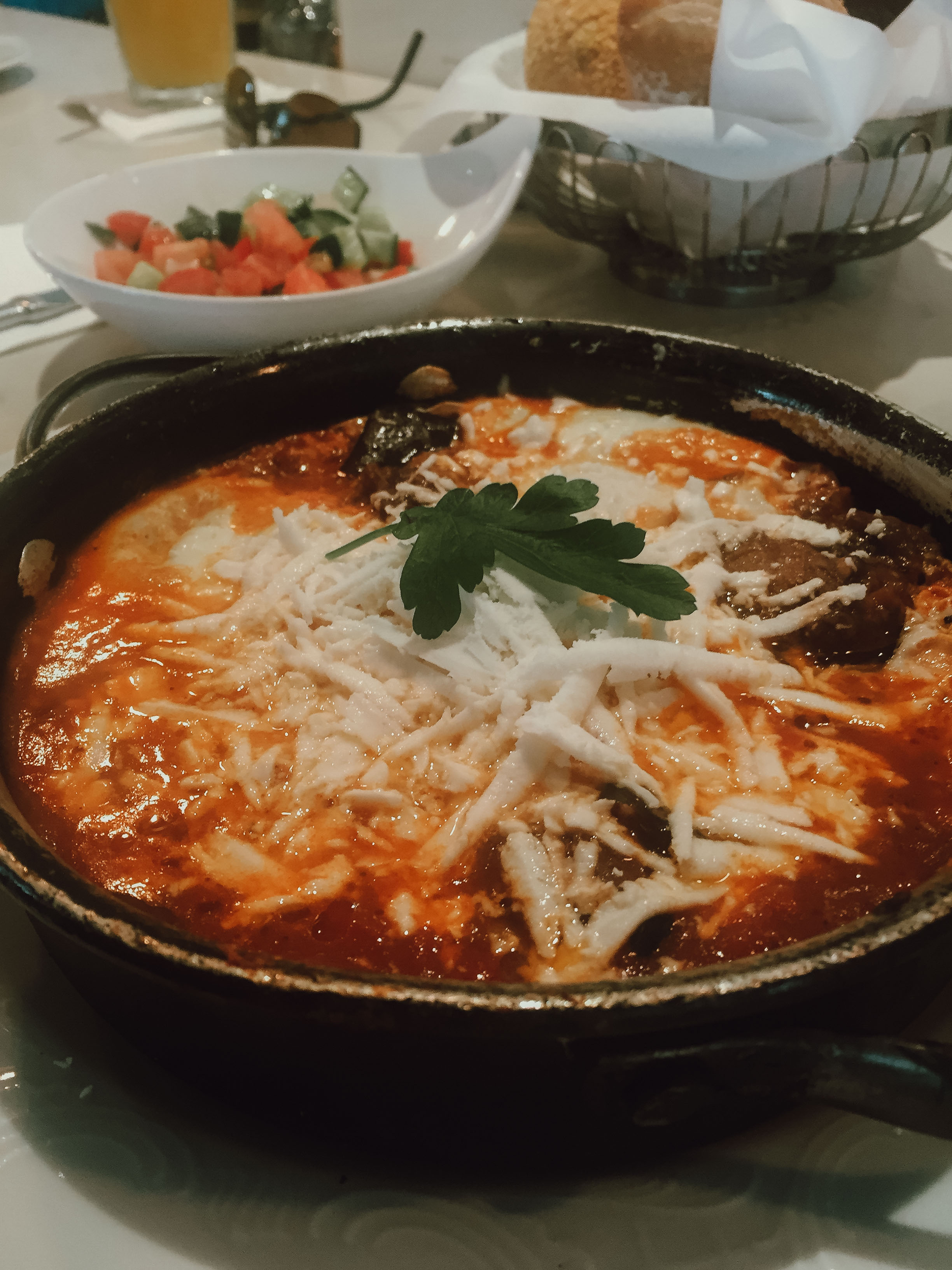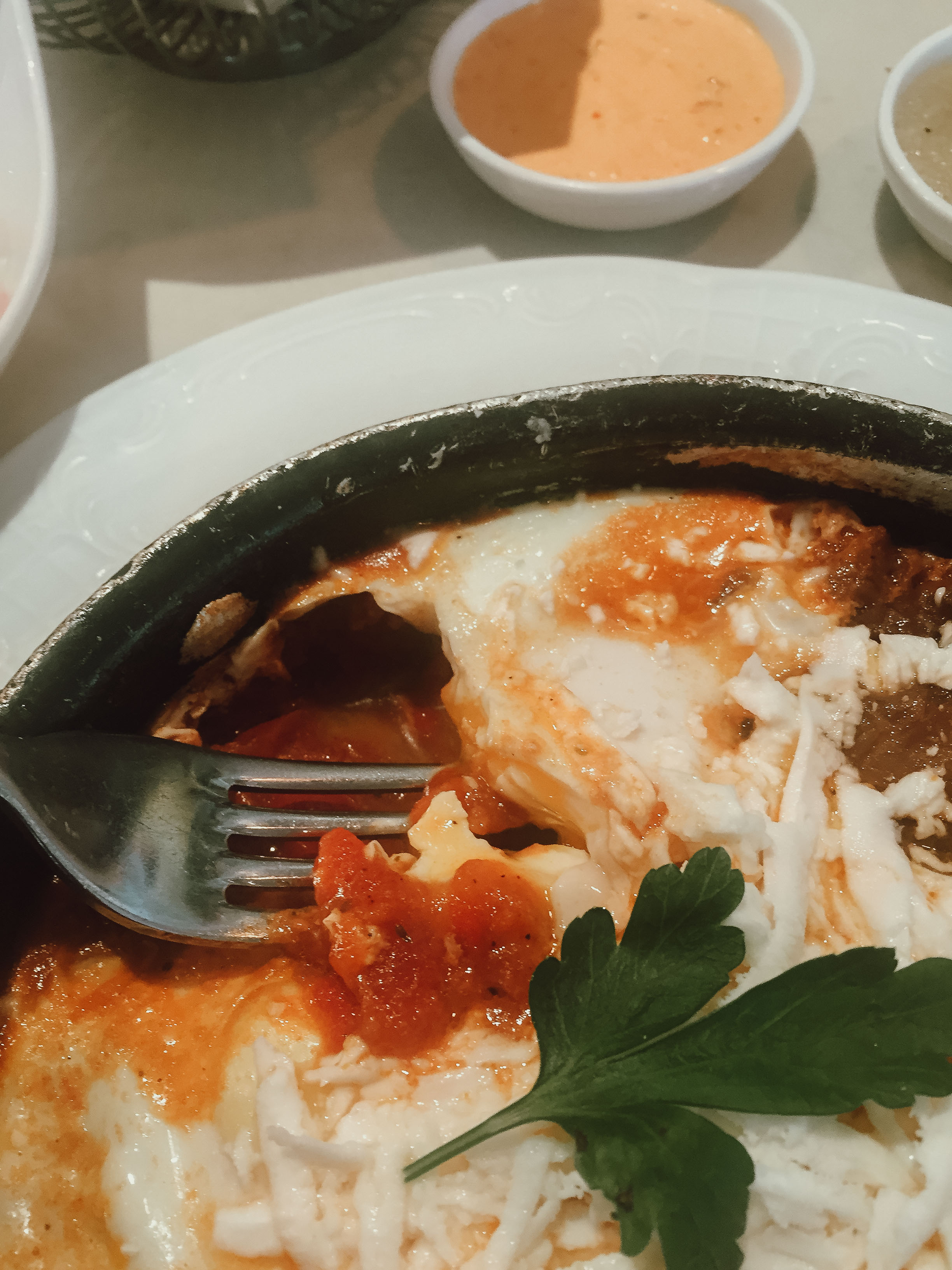 Ich konnte mich fast nicht entscheiden. Am liebsten hätte ich die ganze Speisekarte des Benedict bestellt und mich einfach durchprobiert. An der Zeit hat’s nicht gelegen, das beliebte Frühstücksrestaurant serviert nämlich 24 Stunden lang Frühstück. Yep. Schlussendlich hab ich mich für eine Shakshuka mit Aubergine und Bulgarischem Feta entschieden. Es war ein guter Entscheid.